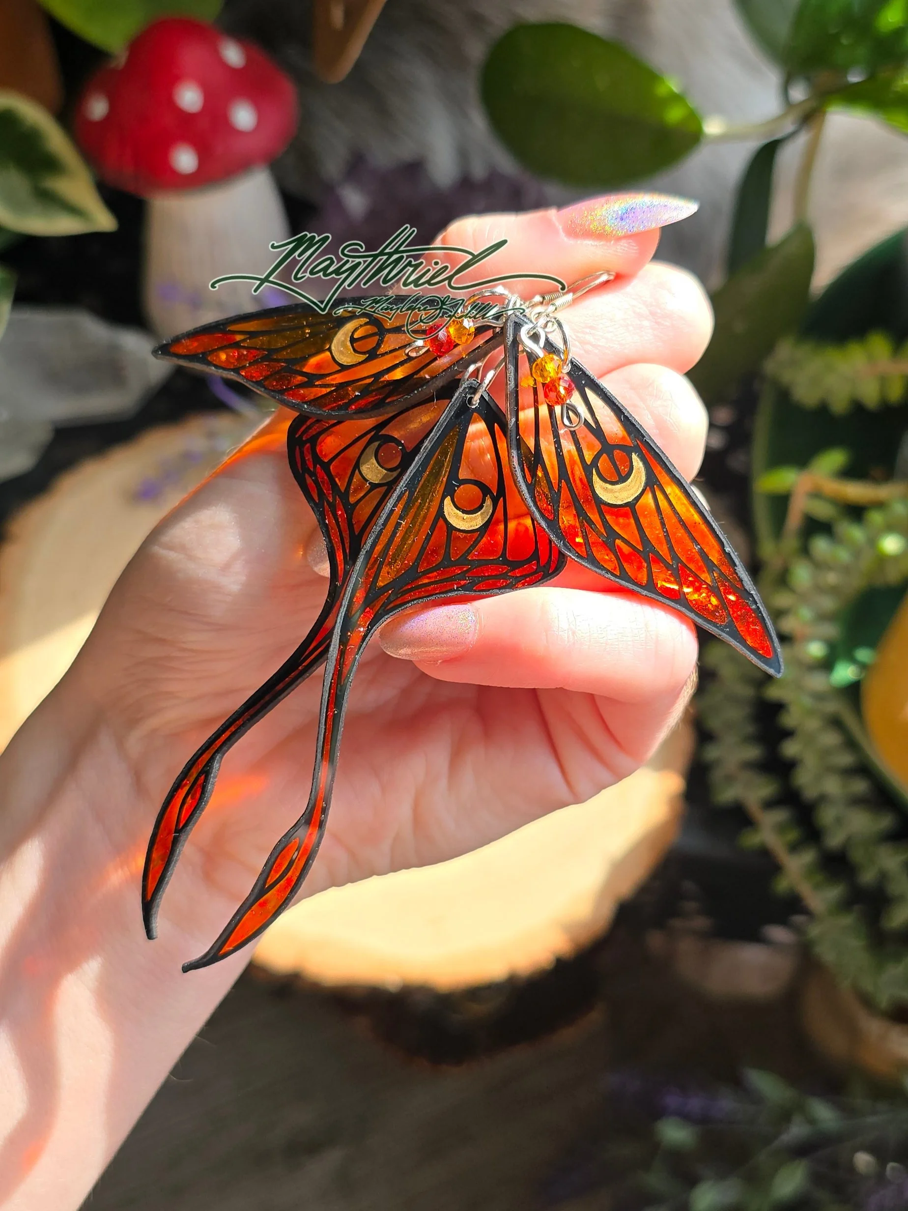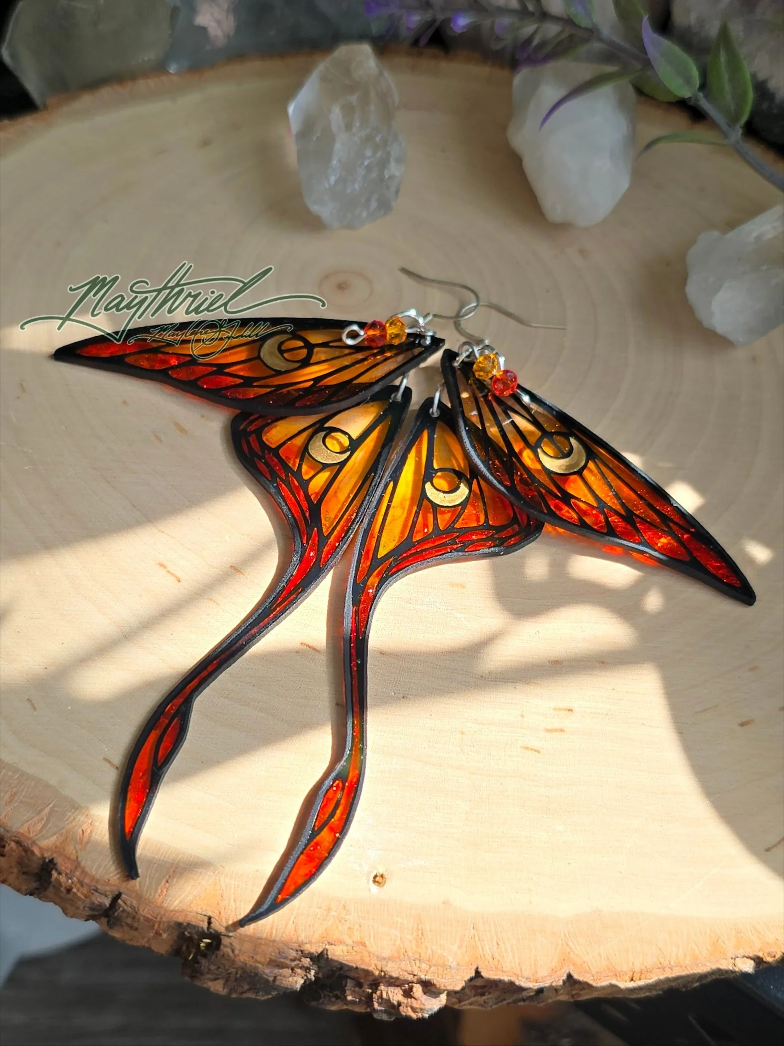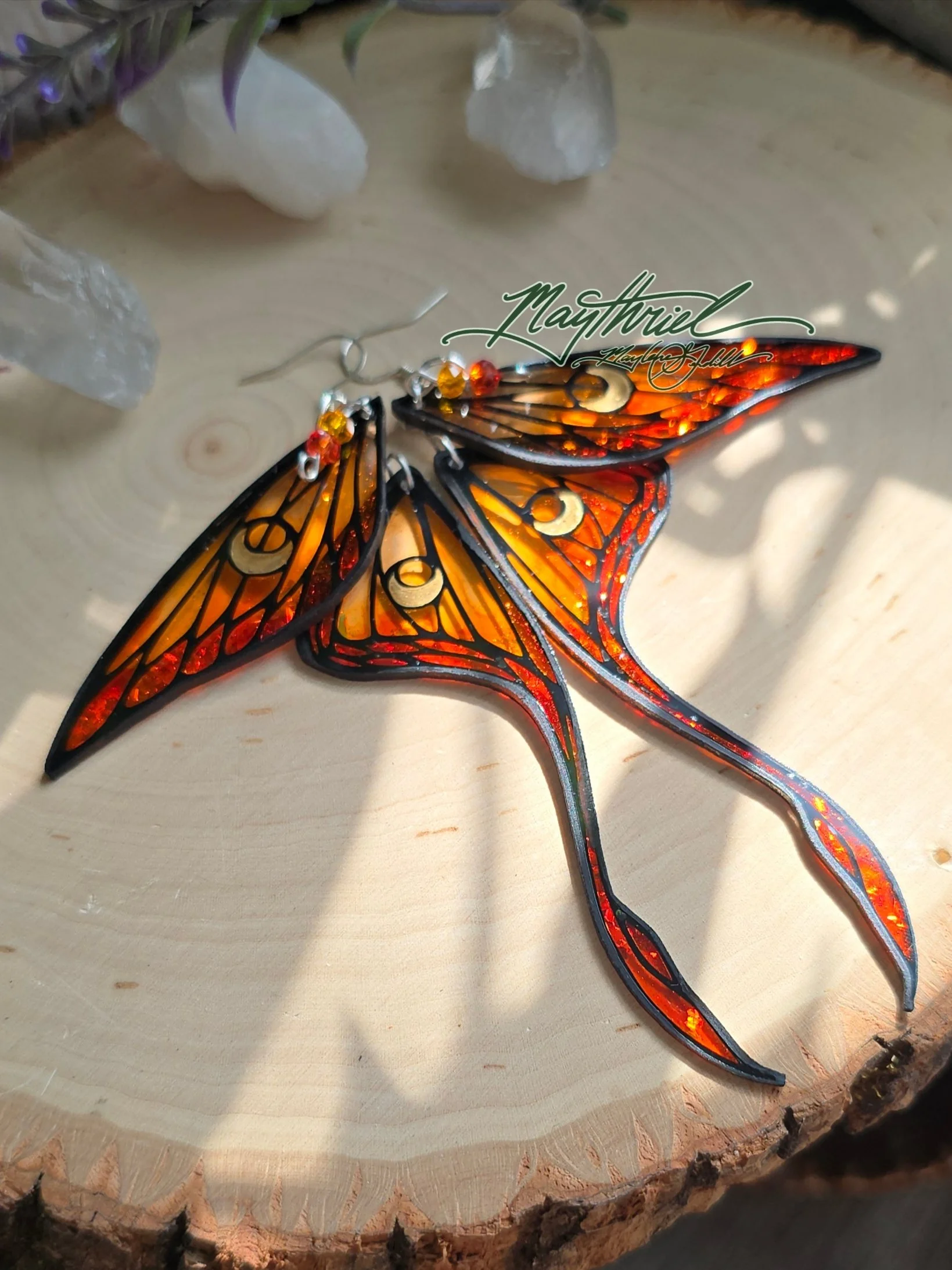 Pumpkin Spice Luna Moth Long Tails Fairy Wing Earrings