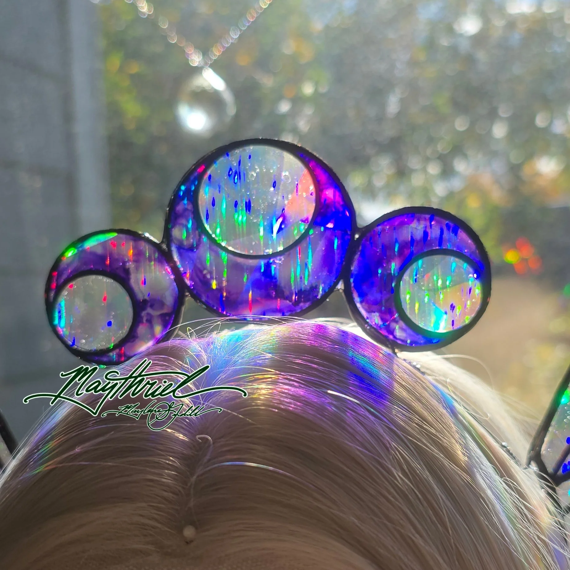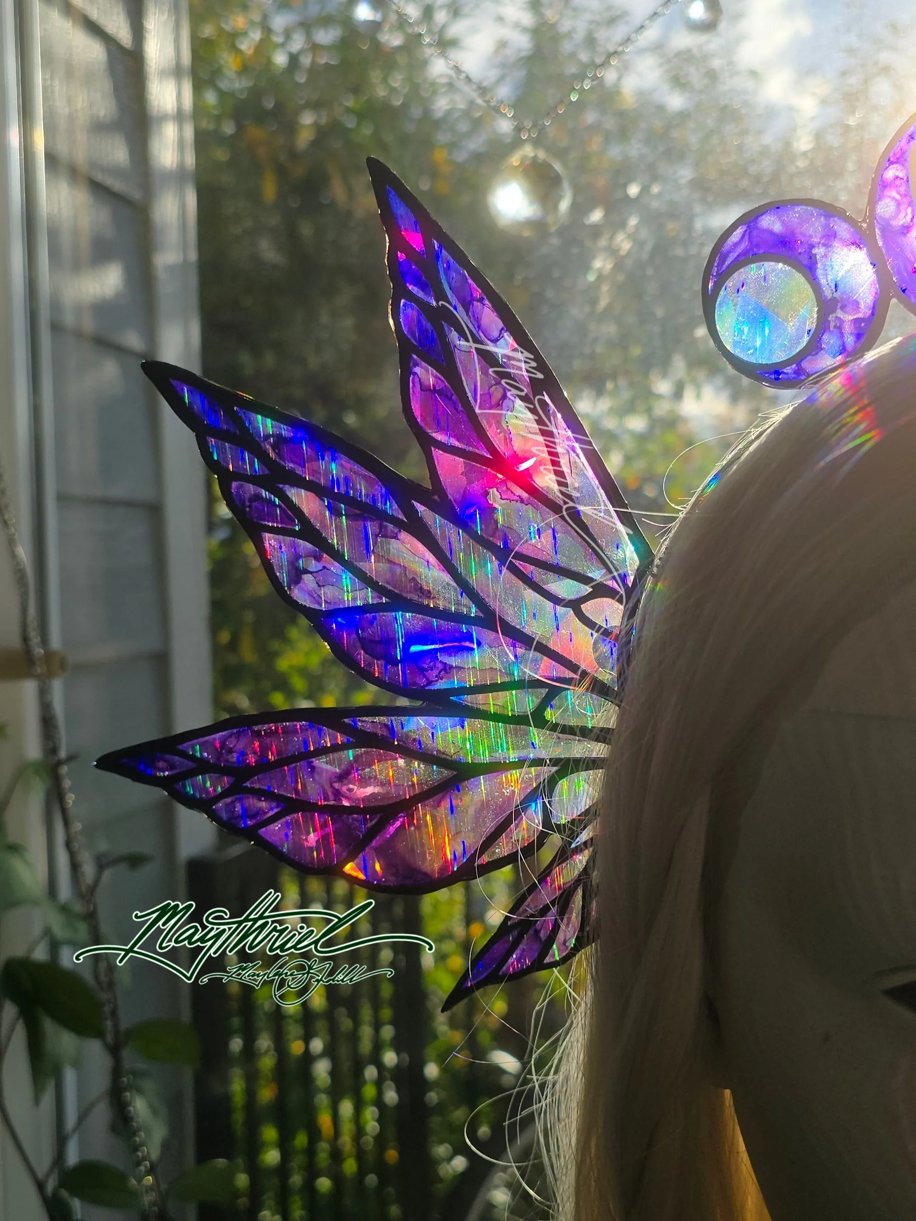 Disclaimer: Color may vary depending on your device screen. (I.e. purples may appear more blue etc.) Our fairy crowns are lovingly handcrafted, so you may notice tiny imperfections like bubbles, slight color and surface variations, or even a touch of fingerprints—proof that each pair is made by human hands with care. Humans are not perfect but fairies love chaos 🖤